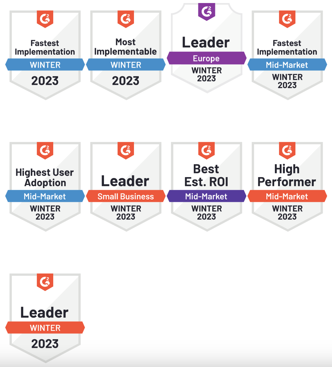 In the G2 Winter 2023 report we received 26 badges for: